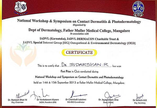 Achieved First place in QUIZ held at “National Workshop and symposium on Contact dermatitis and Photodermatology 2013”.