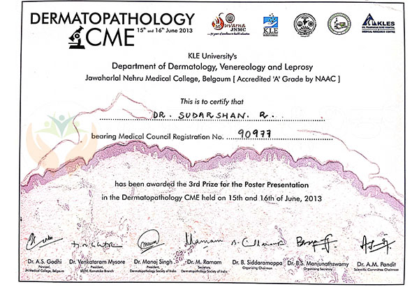 Achieved Third place for poster presentation held at “Dermatopathology CME held at KLE, Belgaum IADVL Karnataka branch, 2013”.